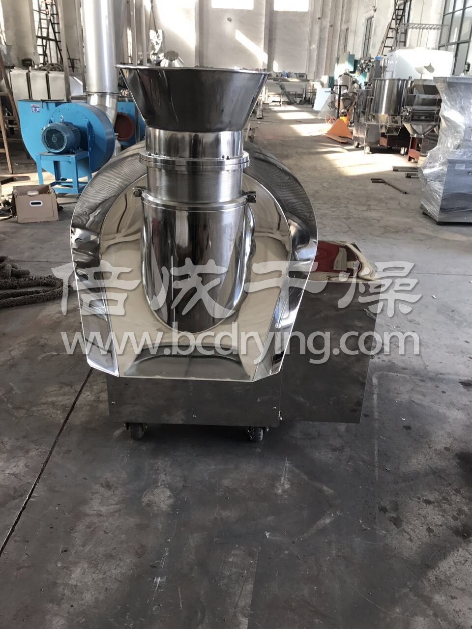 安徽某保健食品公司訂購(gòu)的旋轉(zhuǎn)擠壓造粒機(jī)在固體粉料與液體共存并以固相為主的分散體中,利用分散體的自粘性(或外加粘結(jié)劑),通過(guò)強(qiáng)制方式(如擠壓、重力、離心力、機(jī)械力、氣流沖力等)使固體粉料基本微粒相互粘接、增大。并形成一定形狀和粒度均勻,集中的顆粒群。濕法造粒成套裝置主要由混合(捏和)、造粒、干燥及其輔助系統(tǒng)設(shè)備組成。粉料經(jīng)混合(捏和)后,進(jìn)入造粒機(jī)形成所需粒度的含濕產(chǎn)品,經(jīng)干燥得到顆粒狀成品,從而實(shí)現(xiàn)造粒的目的。